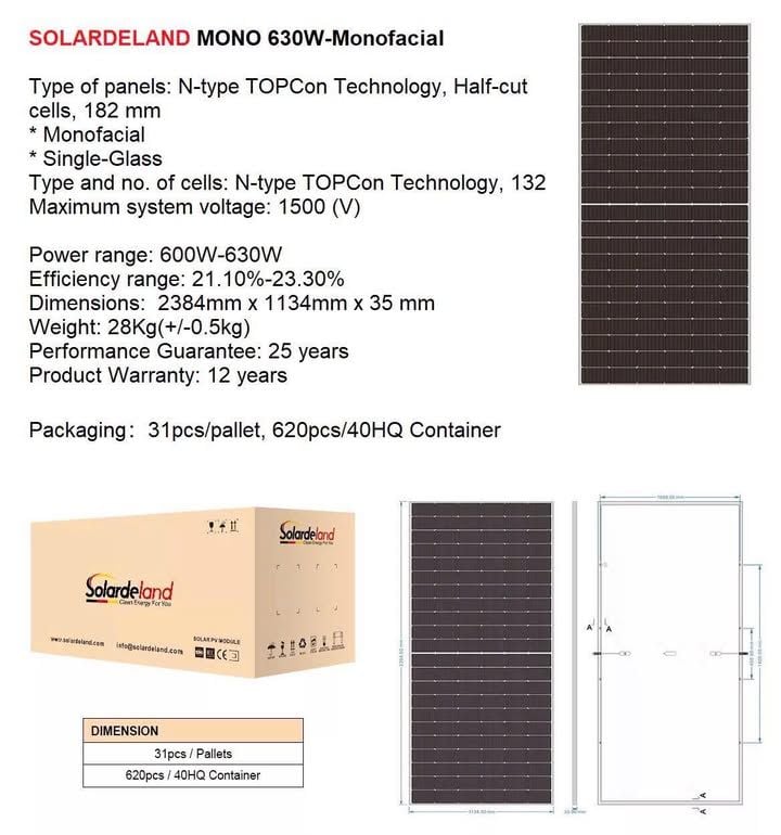 IZU SOLAR PANEL - Solardeland 630wp/35mm